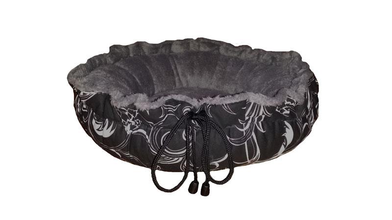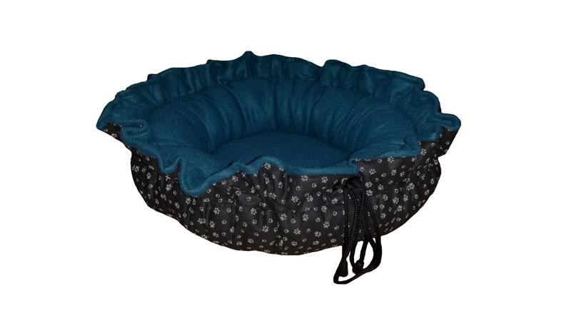 Pomocí sňůrky na okraji pelíšek stáhnete z kulatého polštáře do libovolné velikosti ve tvaru měšce.