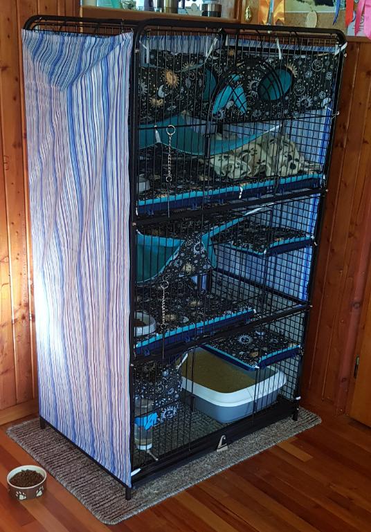 Závěs zabezpečí znečištění okolí klece a zároveň bude mít vaše fretka soukromí.
