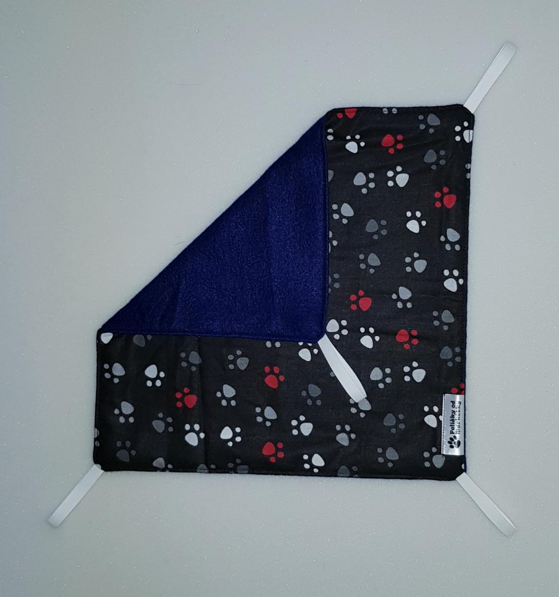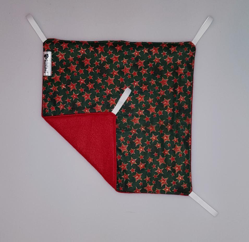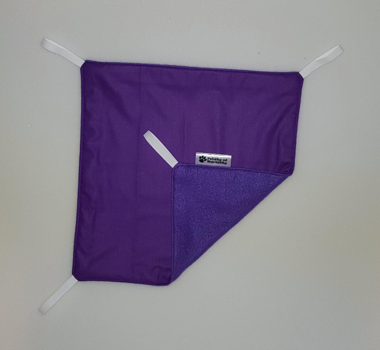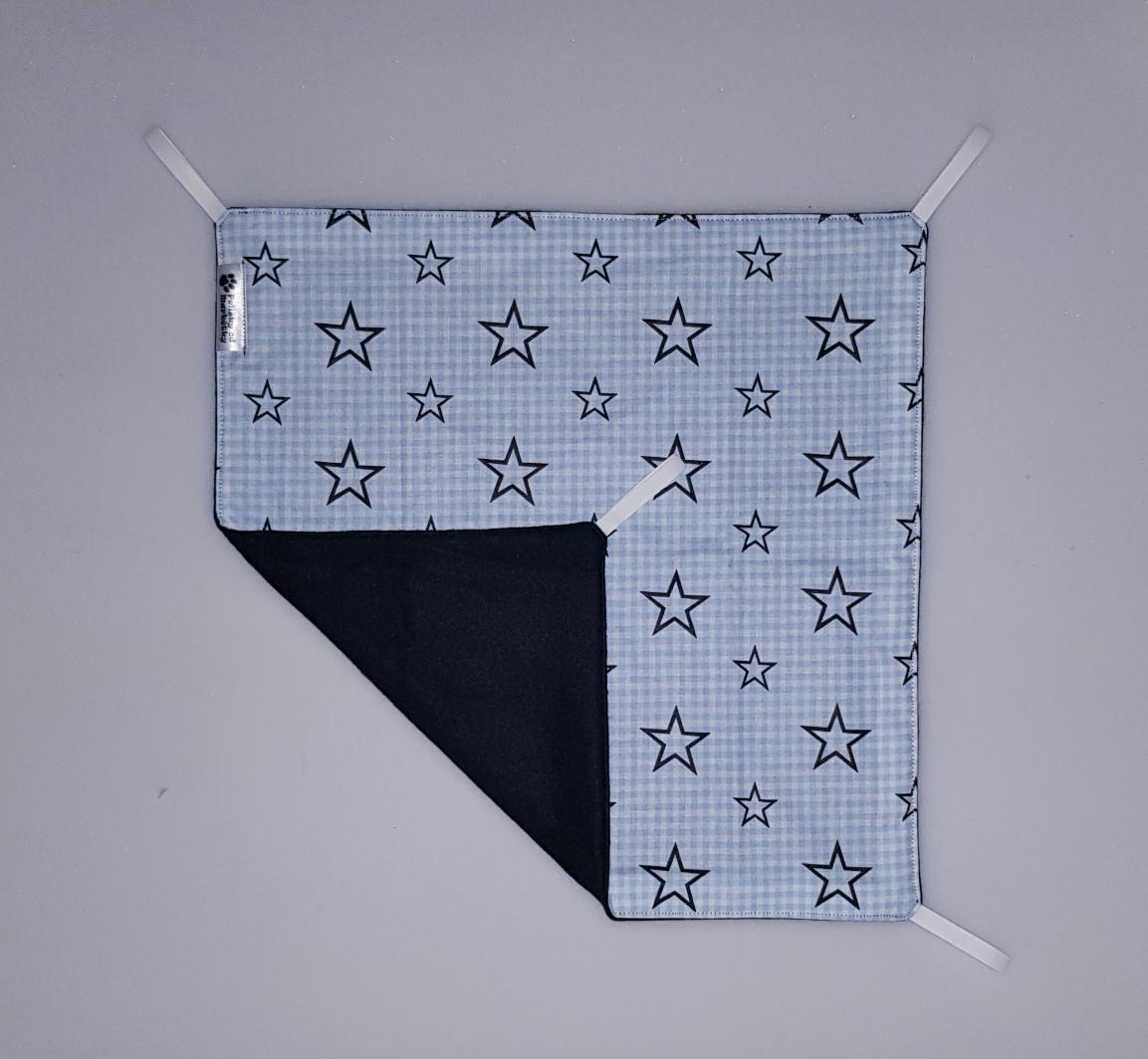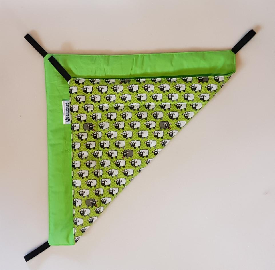 Závěsný pelíšek v provedení hamaky. Lze připevnit v kleci či k přepravce pomocí poutek umístěných v rozích pelíšku.