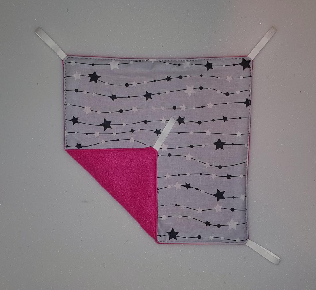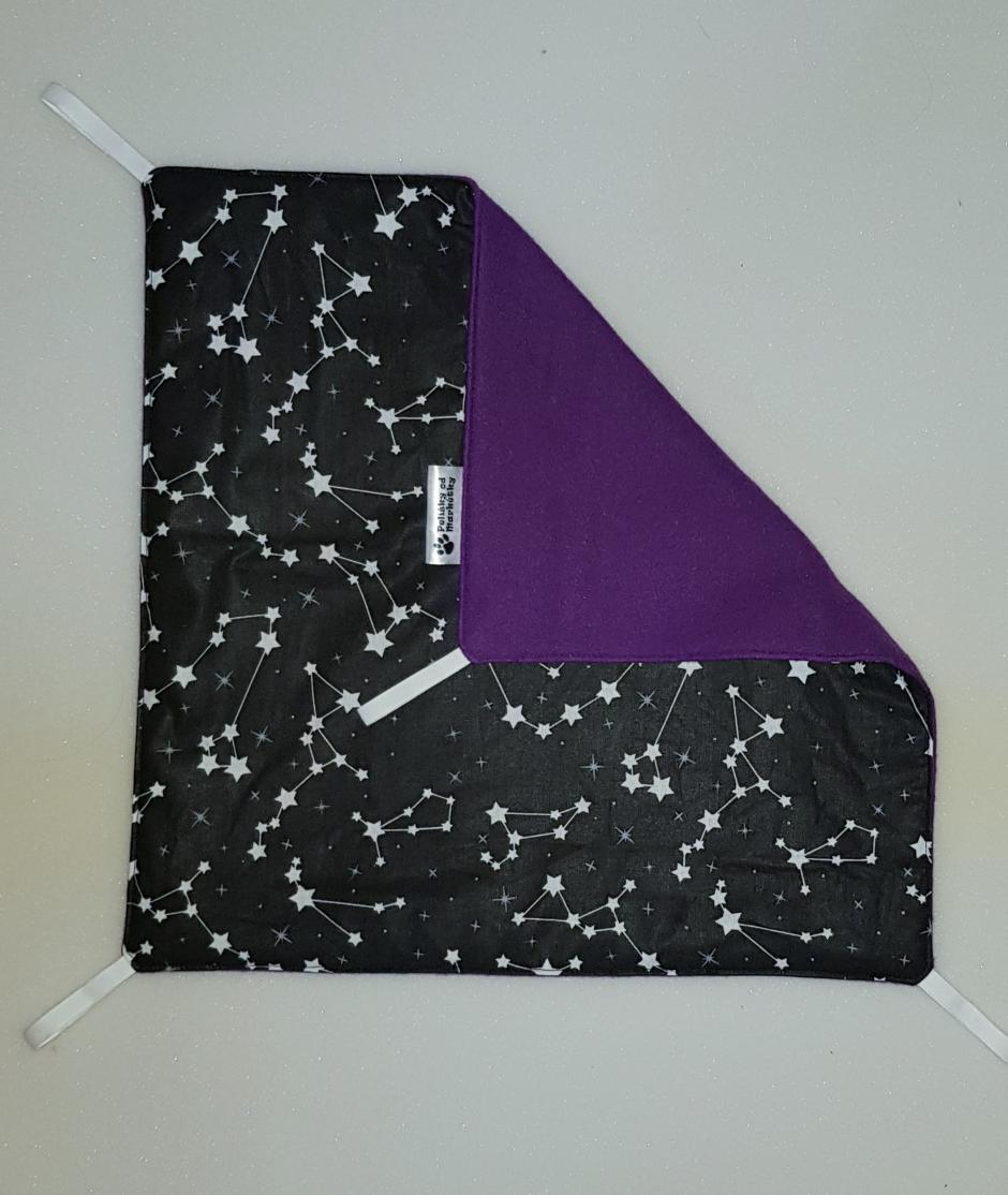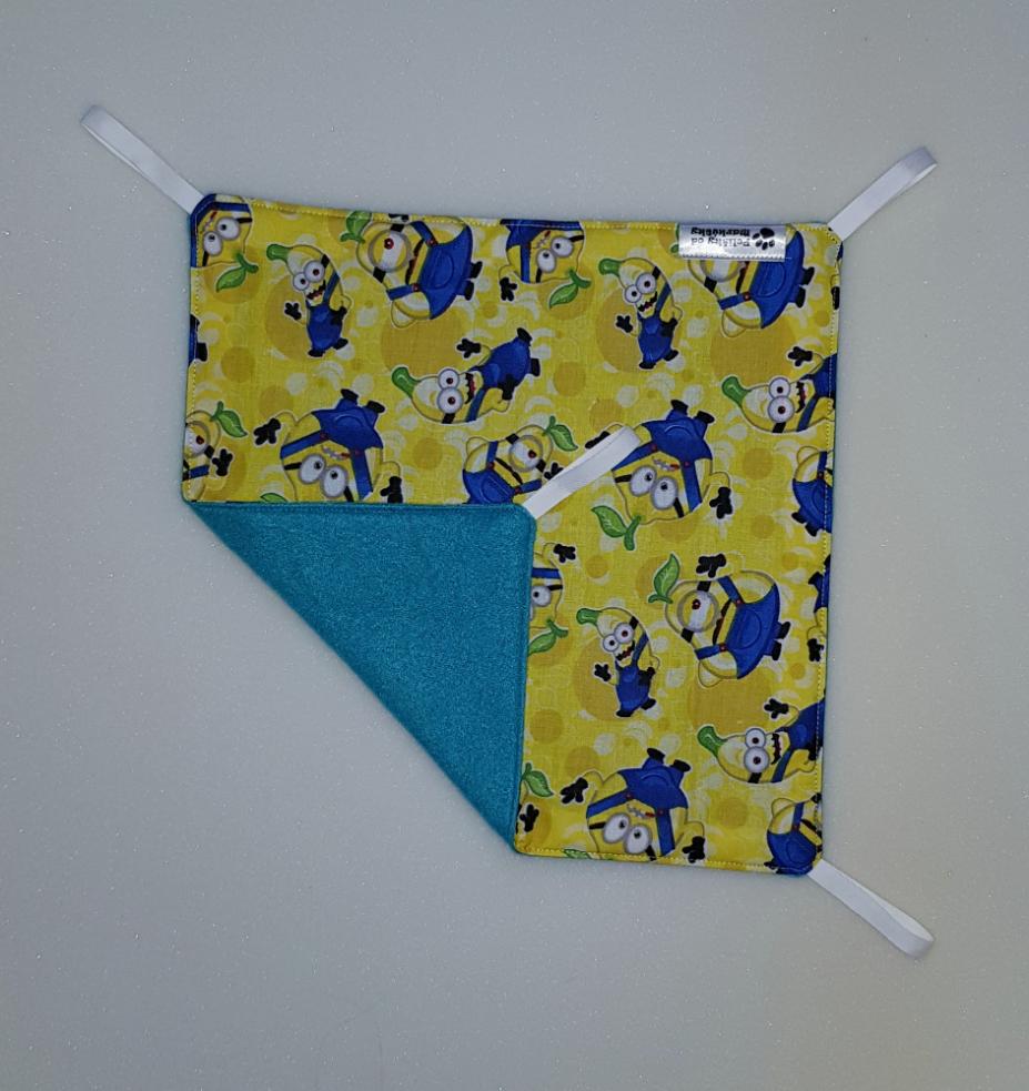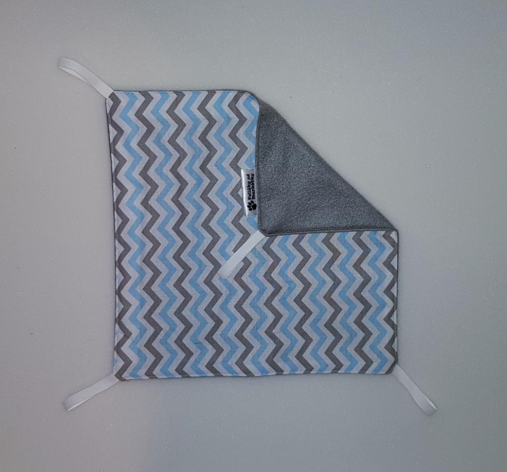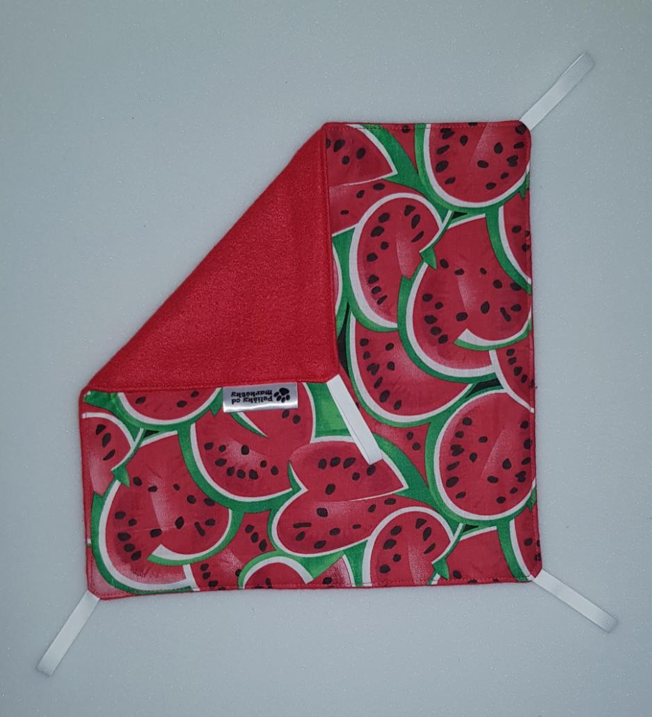 Závěsný pelíšek v provedení hamaky. Lze připevnit v kleci či k přepravce pomocí poutek umístěných v rozích pelíšku.